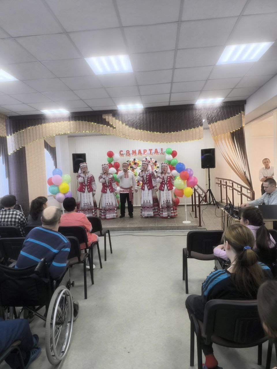 » Вызнянка», было произнесено много добрых и трогательных слов, сердечных пожеланий в адрес прекрасных сотрудниц пансионата, и всех присутствующих женщин. Для милых дам звучали белорусские народные песни и популярные эстрадные хиты, которые вызывали у зрителей настоящий восторг.🎤💐🪄