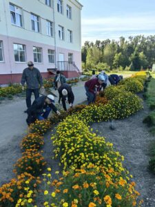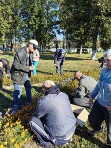 Проживающие пансионата «Доверие» в рамках трудовой терапии спешат собрать семена цветов.